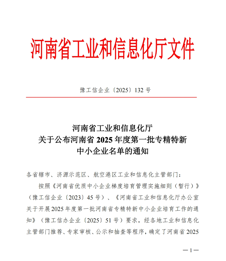 据了解,经企业自愿申报,各省辖市、济源示范区、航空港区工业和信息化主管部门初审推荐,省工业和信息化厅组织专家评审,2025年度第一批河南省专精特新中小企业共认定465家。